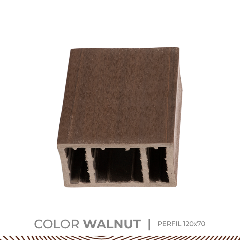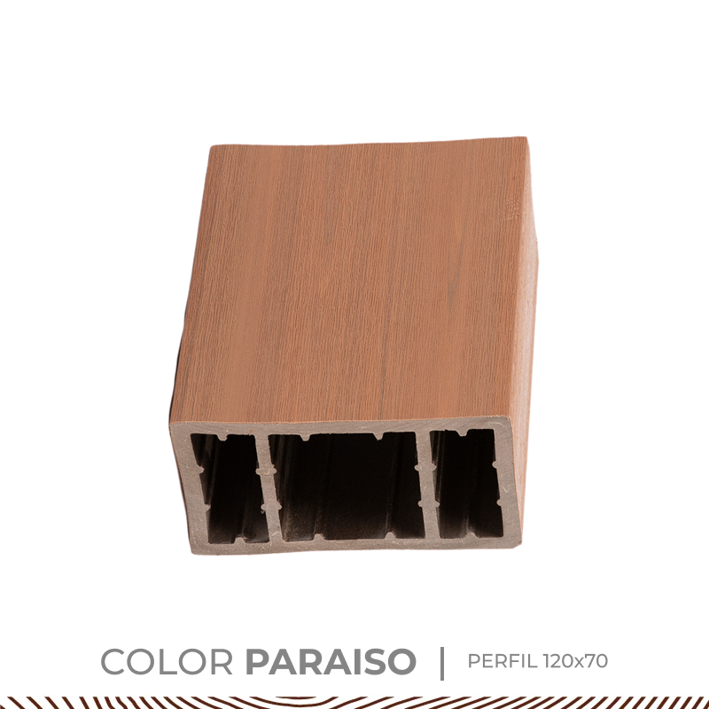 Te presentamos nuestro perfil WPC bicapa, una solución innovadora para proyectos al aire libre. Con dimensiones de 120 mm de alto y 70 mm de ancho, este perfil combina fibras de madera y plástico para resistir las condiciones extremas del exterior. Su revestimiento plástico co-extruido refuerza su resistencia a manchas, decoloraciones y climas adversos. Con aspecto y textura similar a la madera real, puede enfrentar la diversidad climática, altas temperaturas.